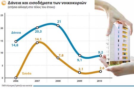 Ένα άλλο σημαντικό στοιχείο, από το οποίο προκύπτει σημαντική στρέβλωση, είναι πως ο ρυθμός αύξησης των εσόδων των νοικοκυριών είναι χαμηλότερος από τον ρυθμό αύξησης των πιστώσεών τους. Είναι, επομένως, αναπόφευκτη η αύξηση των χρεών των νοικοκυριών, τα οποία βασίζονται όλο και περισσότερο στον δανεισμό, για να αυξήσουν την κατανάλωσή τους, αλλά και να εξυπηρετήσουν τις στεγαστικές τους ανάγκες.