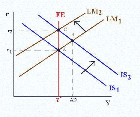 Το μοντέλο του Κέινς δείχνει πως με την αύξηση των κρατικών δαπανών, αυξάνεται το ΑΕΠ, αλλά και τα επιτόκια. Αντίθετα, η νομισματική πολιτική μειώνει τα επιτόκια την ώρα που αυξάνει επίσης το ΑΕΠ. Όχι, όμως, πάντα.
