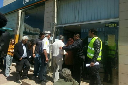 Banks opened at noon with police and private guards looking determined, but the queues were smaller than expected, barely more than 50 or 60 at the largest branches and barely 10 or 20 in smaller ones. By mid afternoon, there was no queue to speak of at most places.