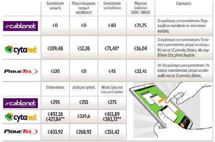 Δεύτερο, υπάρχουν πολλές «κρυμμένες» χρεώσεις. Το παράδειγμα της Cytanet είναι χαρακτηριστικό: Ενώ το πάγιο που χρεώνεται για τις υπηρεσίες διαδικτύου είναι το φθηνότερο στην αγορά, την ίδια ώρα υπάρχει και υποχρεωτικό πάγιο για τηλεφωνία. Το κόστος εγκατάστασης είναι επίσης εξαιρετικά υψηλό. Ουσιαστικά, η cytanet είναι μακράν η ακριβότερη, ενώ αν συγκριθεί με τον φθηνότερο εκ των ανταγωνιστών, «αποσβένεται» η διαφορά στις χρεώσεις εγκατάστασης μετά από τρία χρόνια. Ο ένας μήνας δωρεάν που παρέχεται από τη cytanet σε περίπτωση 12μηνου συμβολαίου, δεν αλλάζει αυτό τον υπολογισμό.