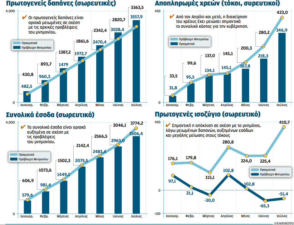 Η αύξηση των δαπανών είναι δυνατή χάρη σε μία σειρά από δεδομένα που έχουν διαμορφωθεί το τελευταίο διάστημα, και τα οποία αλλάζουν άρδην την εικόνα των δημόσιων οικονομικών. Όπως έγραψε η «Κ» προ εβδομάδας, σημαντικό στοιχείο αποτέλεσε αύξηση των εσόδων και μείωση των δαπανών σε σχέση με τις προβλέψεις του Μνημονίου. Εξαιρετικά σημαντική για αυτό το ζήτημα, ήταν η αξιοσημείωτη μείωση του κόστους εξυπηρέτησης του χρέους, χάρη σε τρία δεδομένα: Τα μειωμένα επιτόκια που χρεώνει η Τρόικα σε σχέση με άλλες επιλογές (στο 3%), την επαναδιαπραγμάτευση των επιτοκίων στο ρωσικό δάνειο (στο 3,5%) και η αναδιάρθρωση του χρέους με την πρόσφατη έκδοση ομολόγου από το Υπουργείο Οικονομικών.