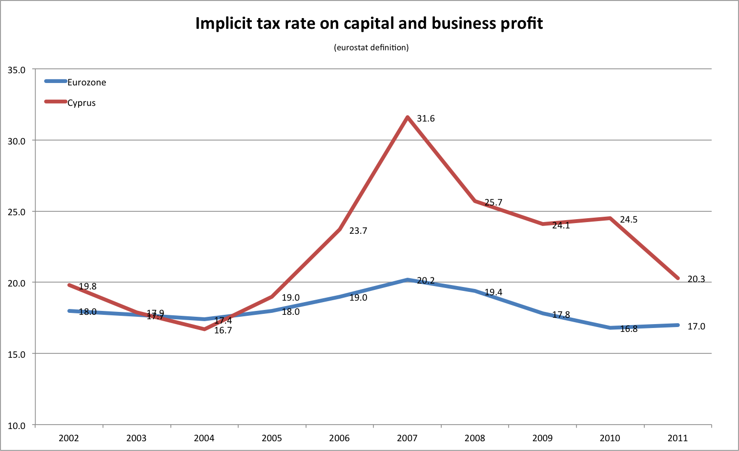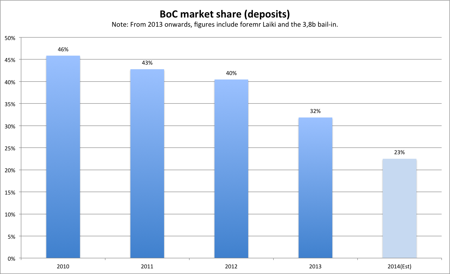 Behind the bond’s bend: After absorbing Laiki bank, Bank of Cyprus also inherited the Laiki recap bond, worth 1,8b (and 1,91 at maturity). The bond is held at an IFRS discount and it is estimated by IMF/KPMG/PIMCO that it will boost Bank of Cyprus capital by 2,7%. Back-of-the-wedding-invitation estimates put that number near the 540m mark.