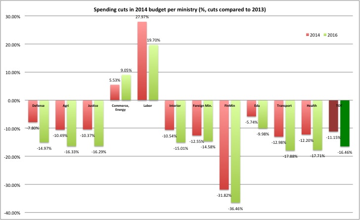 FinMin’s spending cuts for 2014 and over the three year horizon for the Program Period. Brave cuts, if you can get them through cabinet.