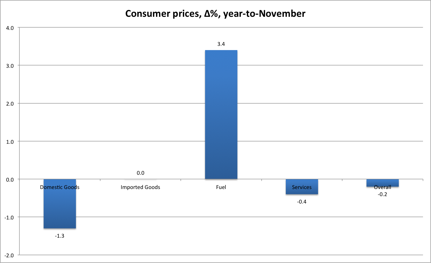 Domestically produced prices are in decline in many categories (Food and Beverages, Health and Leisure). Although tourism figures remain positive, they are probably buoyed by better-than-expected results this summer. Note that Health and Education were two of the main drivers of inflation in previous quarters and are both declining, even though Education is still positive.