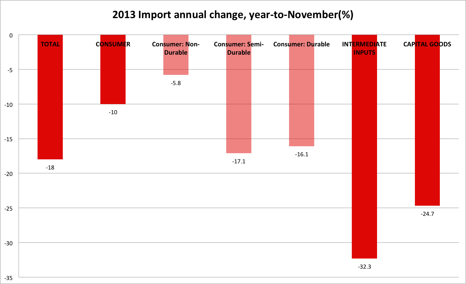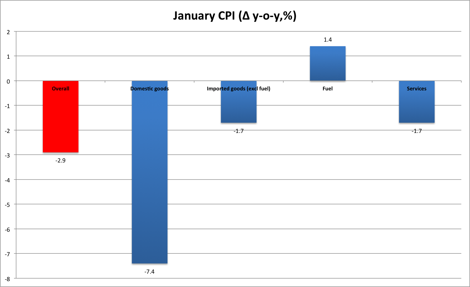 Overall imports are lingering at around -20% almost, which in itself is a leading indicator for more depression coming along. Still expecting that the official -8.7% will be surpassed, despite pretty good figures so far.