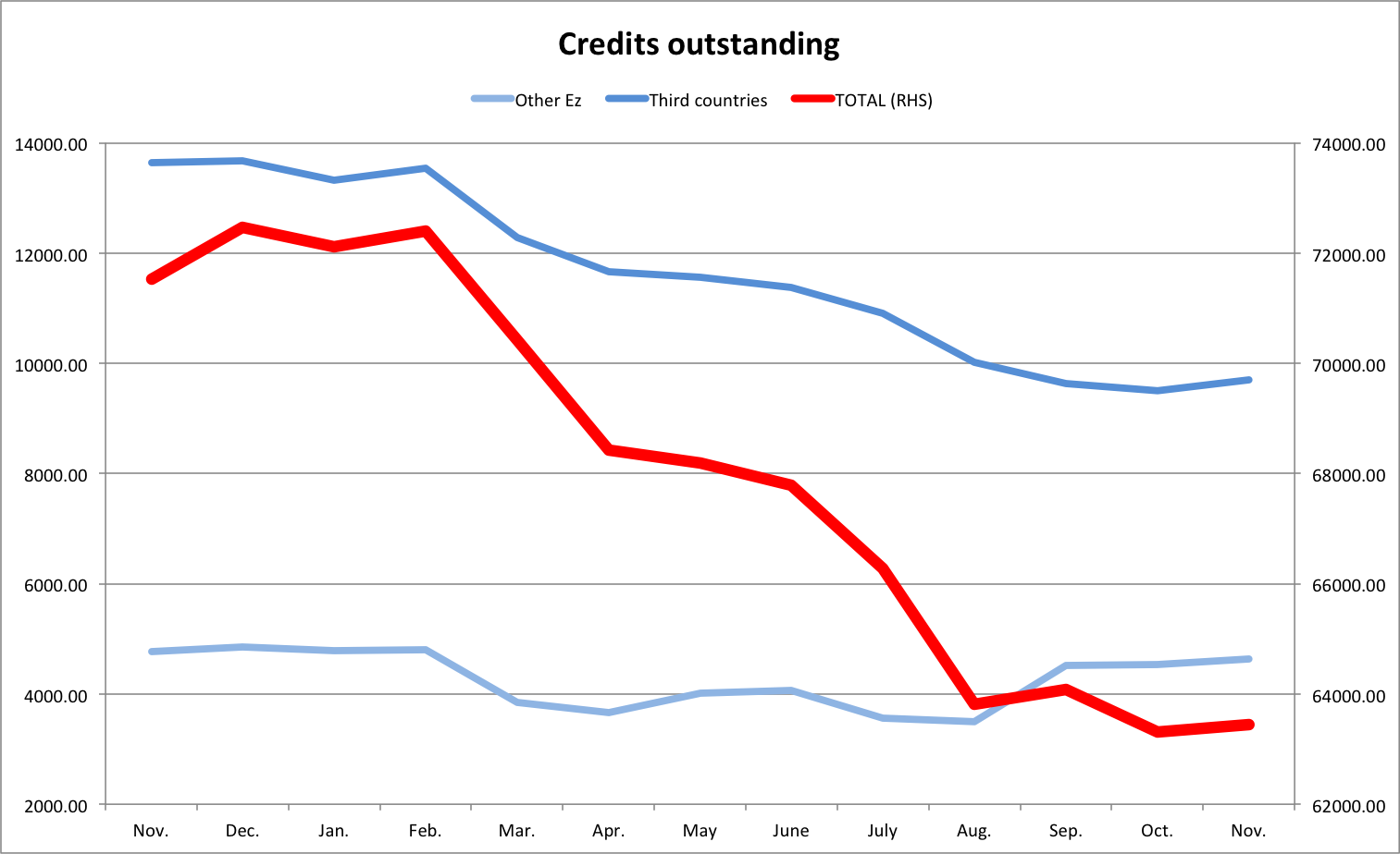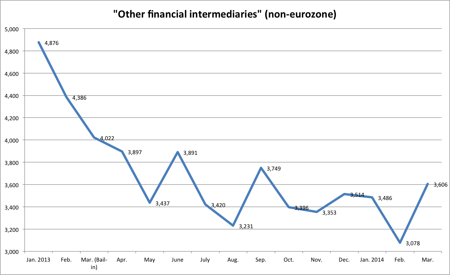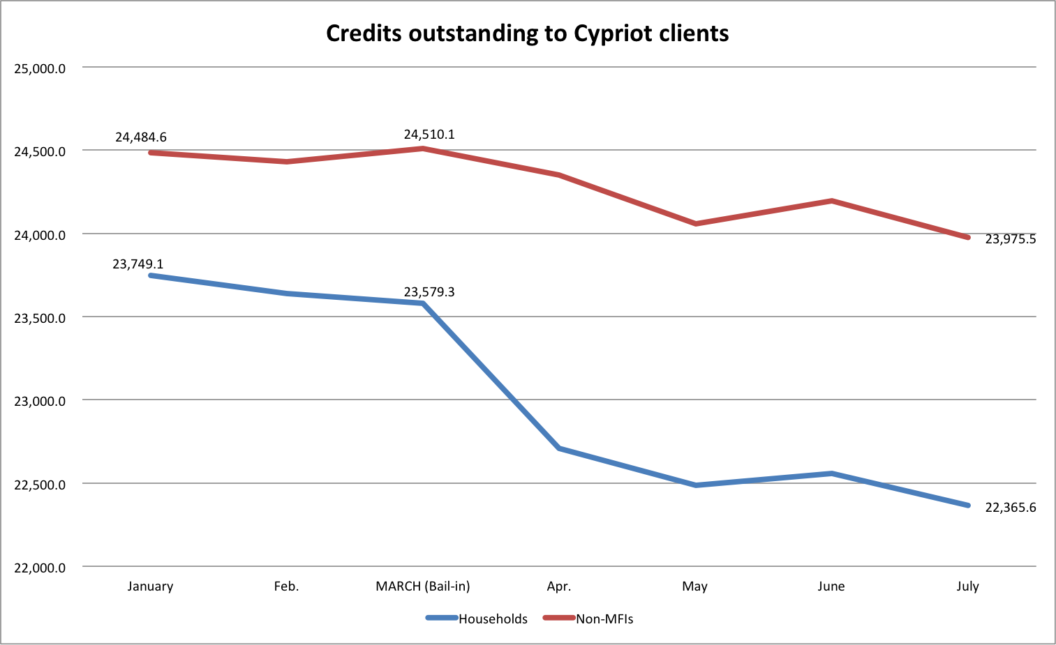 Third country businesses (nonMFIs) are also reducing their outstanding balances, although this marks part of the BoC and Laiki bail-in.