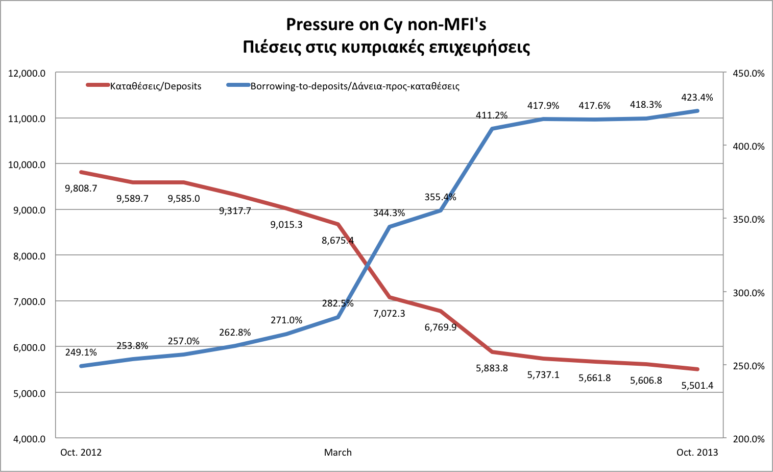 Apart from confidence collapsing, all of this is also showing disintermediation as Cypriots are also reducing balances. Apart from the obvious implications for the financial system, Cy household and business leverage is increasing.