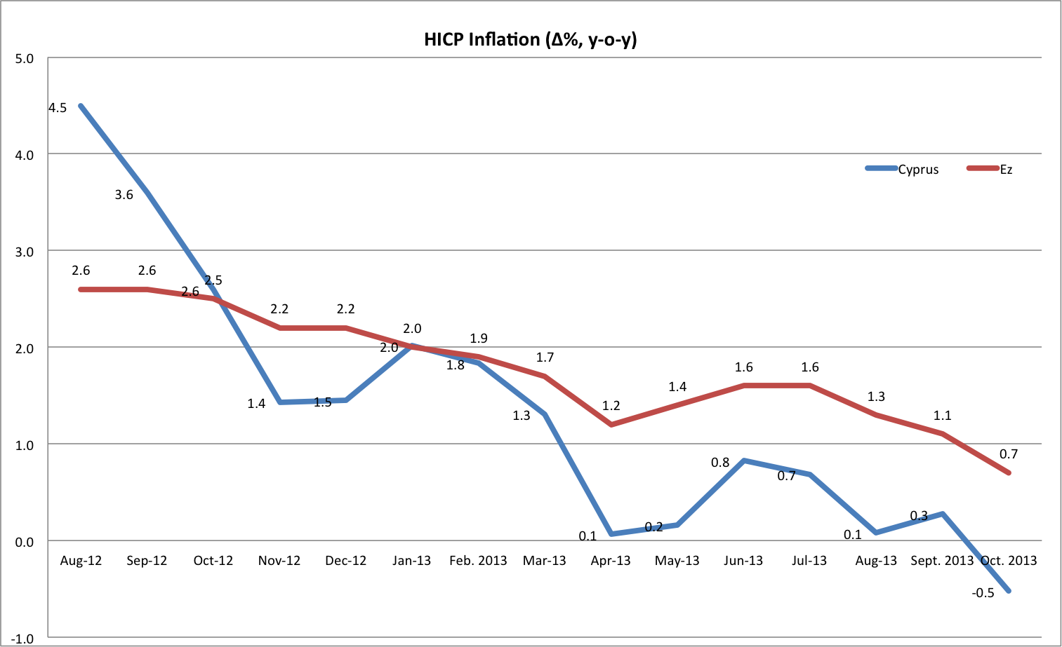 Still illiquid: Banks in the domestic market are still struggling to deleverage. Although deposits are declining, as was to be expected, what causes some concern is that loan recalls are not taking place at the same pace. Loans from Cyprus domestic banks to foreign entities and individuals are declining much faster than loans to Cypriot resident non-MFIs and households, which are at -6% y-o-y.