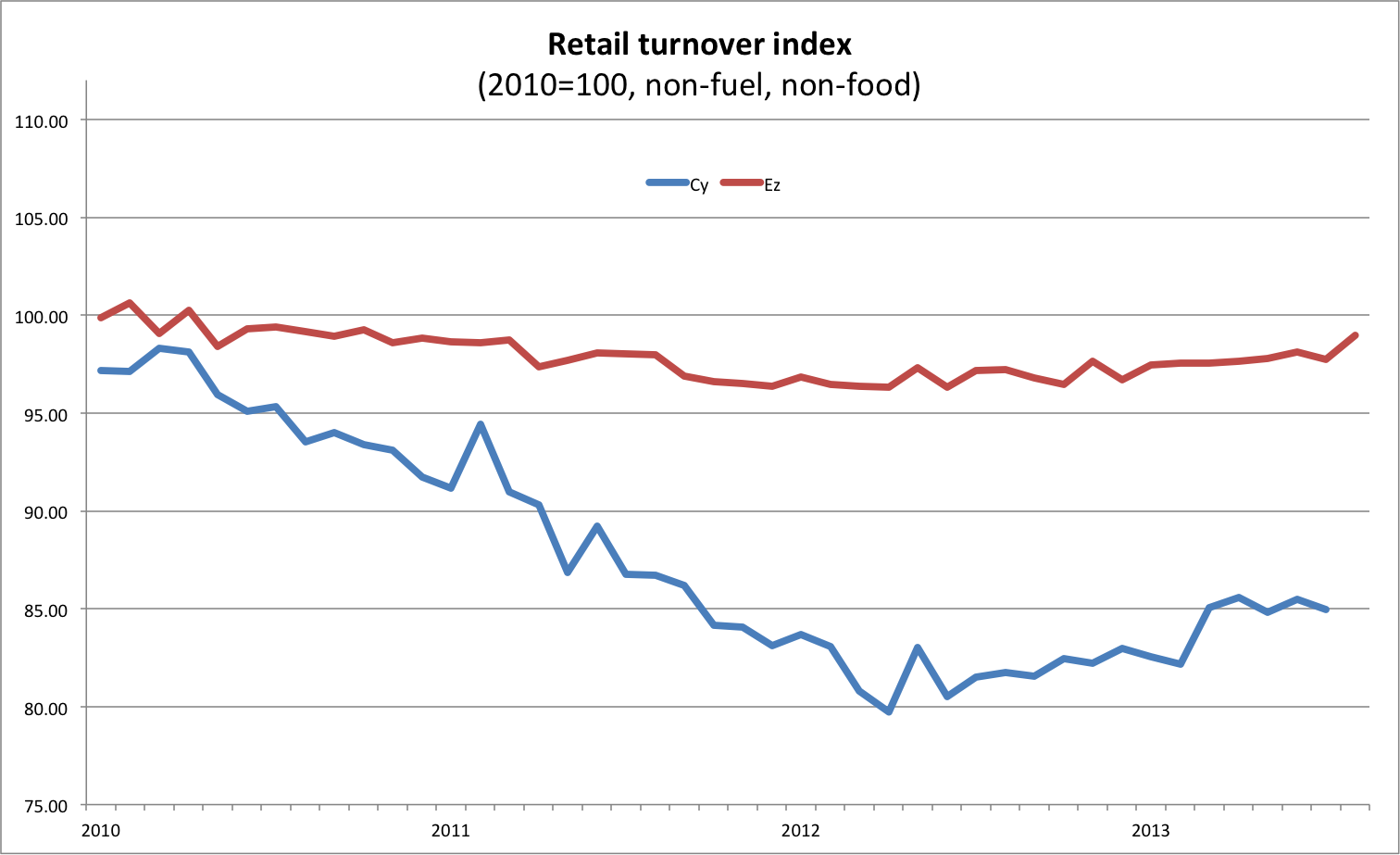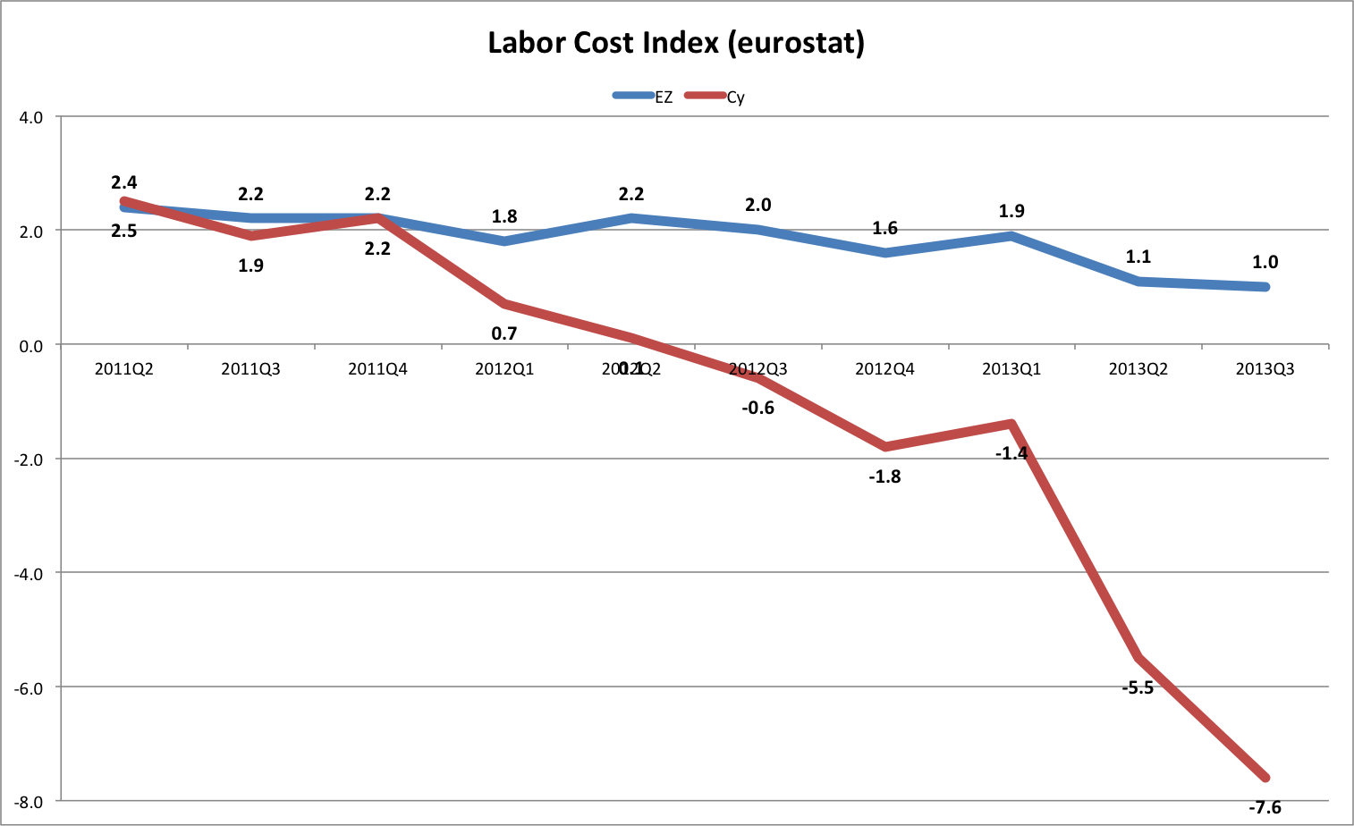 We are still concerned that, because Cyprus (small-open-siland economy) depends almost entirely on imports for its inputs, the depreciation will increase, rather that decrease relative prices as it puts pressure on production costs. That aside, exports to non-Ez countries (here a rough proxy including non-EU plus the UK, a makor trade partner) could get a boost.