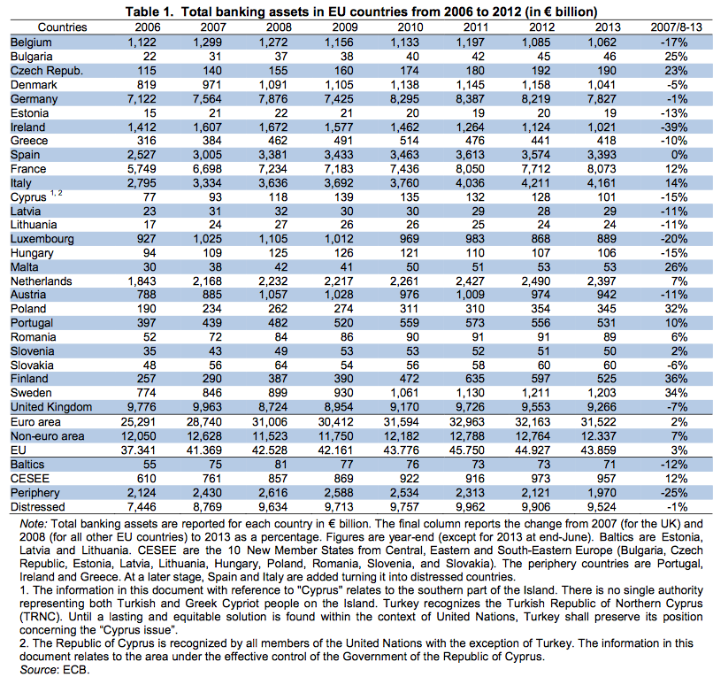 Total assets have declined significantly since 2007/8 in Cy banking system, in the order of 15%. OECD data show that this sort of asset reduction is more or less «normal», although, interestingly, the largest declines in total assets were in MoU countries.