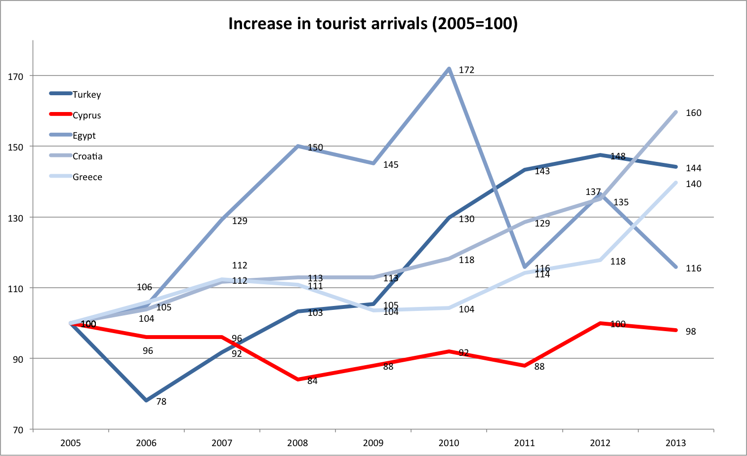 Underperforming: With tourist arrivals looking good compared to the atrociously bad last few years, there is a sense of relief among officials and some of the industry leaders. However, longer term trends show how much Cyprus is in need for reform in a heavily regulated (and mismanaged) industry that is the lifeblood of the economy.