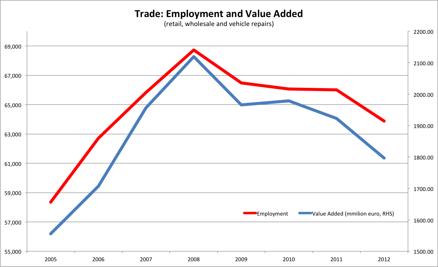 Growth in both turnover and employment in trade coincide chronologically with the credit boom. Indeed, as we noted earlier, consumer loans have a higher NPL rate (54%) and higher overall NPL value (4,4  billion) than housing loans, where most of the attention is falling. The numbers spike even further if one includes another category, «Other Loans», which include many consumer loans after a redefinition (more on that later). One dares refer to a bubble in retail, which in turn would imply that measures to boost «consumption» (meaning retail) are doomed- or perhaps should be given up altogether (if this is indeed a correction).