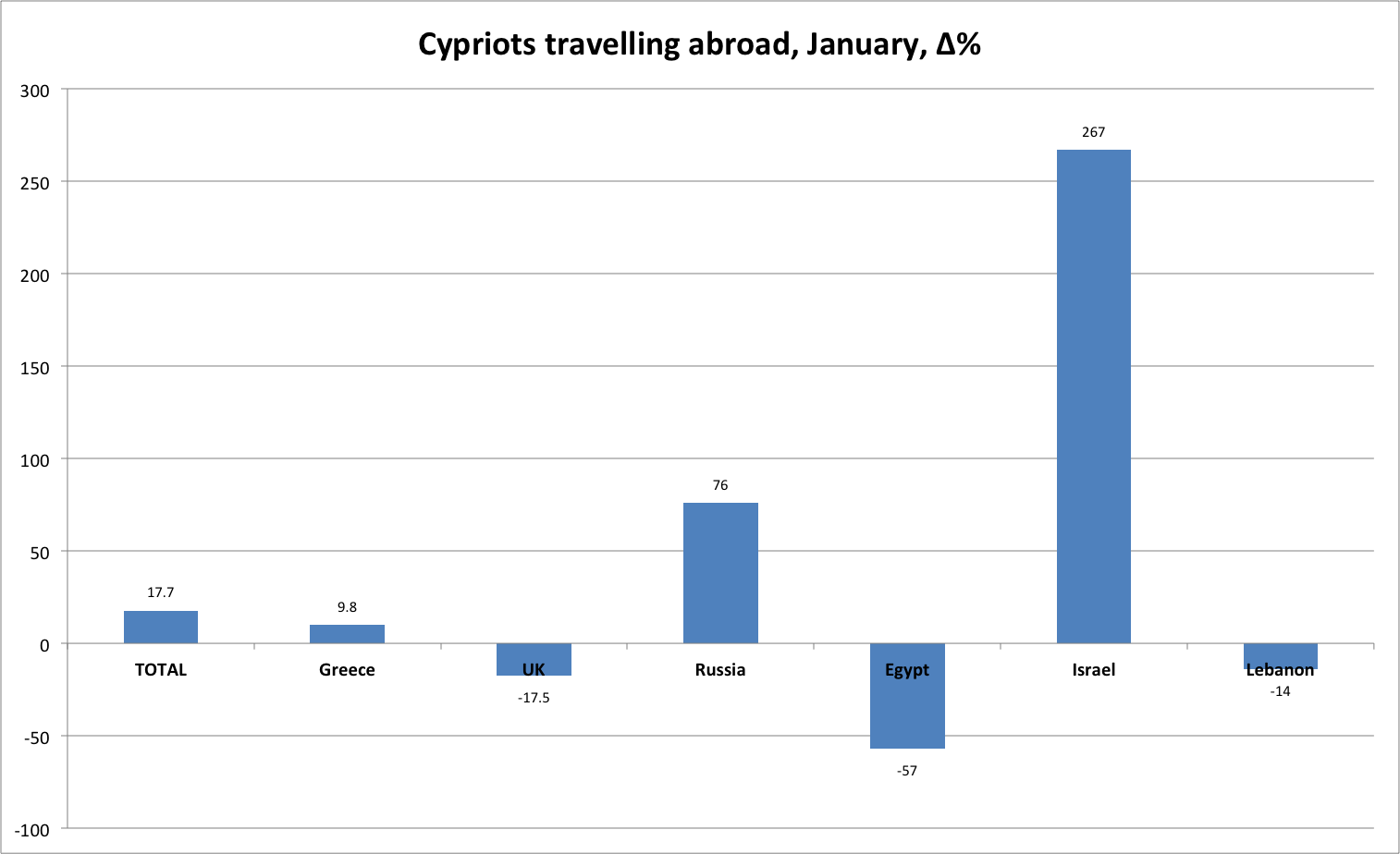 Overall arrivals are down by 4% despite some impressive declines from the markets that used to be the main drivers of tourism (especially UK). Tourism spending figures have not yet been announced, but the increase in Russians and the decline of traditional «sun-sea-and-sex» tourists are an indication that tourism receipts should be better than the -4% of arrivals, and perhaps even in positive territory.